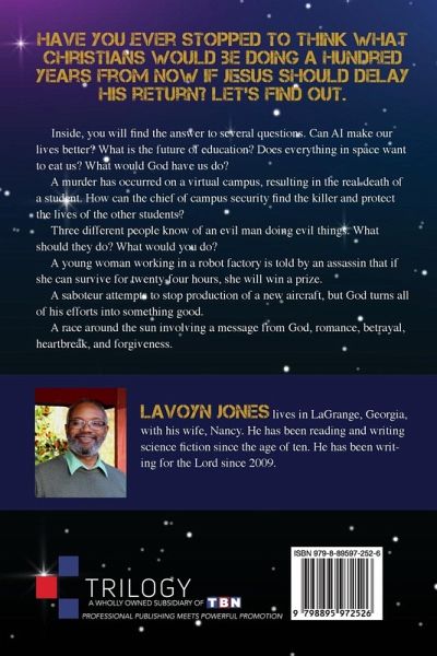 Have you ever stopped to think what Christians would be doing a hundred years from now if Jesus should delay His return? Let's find out. Inside, you will find the answer to several questions. Can AI make our lives better? What is the future of education? Does everything in space want to eat us? What would God have us do? A murder has occurred on a virtual campus, resulting in the real death of a student. How can the chief of campus security find the killer and protect the lives of the other students? Three different people know of an evil man doing evil things. What should they do? What would you do? A young woman working in a robot factory is told by an assassin that if she can survive for twenty-four hours, she will win a prize. A saboteur attempts to stop production of a new aircraft, but God turns all of his efforts into something good. A race around the sun involving a message from God, romance, betrayal, heartbreak, and forgiveness.