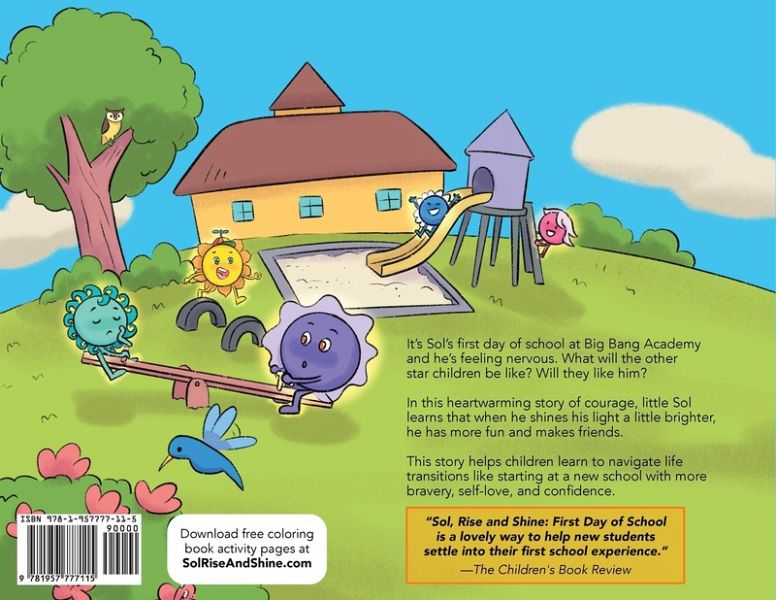 It's little Sol's first day of school at the Big Bang Academy and he's feeling a little nervous. What will the other star children be like? Will they like him? In this heartwarming story of personal growth and courage, Sol learns that by shining his light a little brighter, he has more fun, makes friends, and learns about himself. This story helps children learn how to better navigate life transitions like starting at a new school with more bravery, self-love, and confidence.