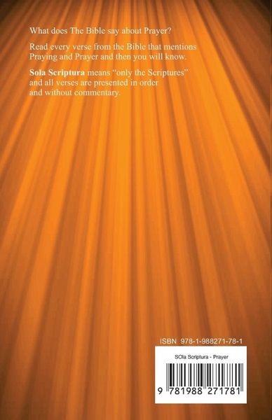 84 pages. What does The Bible say about Prayer and Praying? Read the full context of every Scriptural reference to Prayer and Praying from The Bible in order, from the Book of Genesis to Revelation. Sola Scriptura means "only the Scriptures", and as a concordance lists where in The Bible each keyword appears, this book lists each of those references in full context, so that you can quickly read everything that The Bible itself says about Prayer. When you read all of the references to a spiritual topic you will reach the balance point of personal truth and understanding about what The Bible itself says. You can mark or highlight those verses that are or most interest or importance. Look for other topics in this series of booklets, such as Angels, Healing and The Sabbath. Also look on Amazon for the "Sola Scriptura Topical Bible: Top 20 Spiritual Symbols" which features 20 of the most important spiritual topics and symbols from the Bible that every person should know, including Baptism, Commandments, Covenant, Miracles, Heaven, The Holy Spirit, Resurrection, The Son of God, and more...