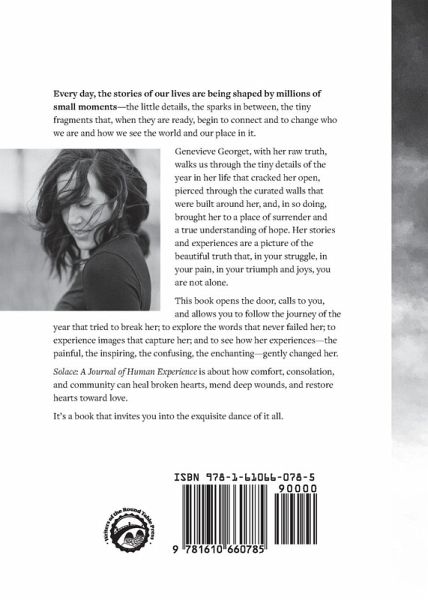 Every day, the stories of our lives are being shaped by millions of small moments-the little details, the sparks in between, the tiny fragments that, when they are ready, begin to connect and to change who we are and how we see the world and our place in it. Genevieve Georget, with her raw truth, walks us through the tiny details of the year in her life that cracked her open, pierced through the curated walls that were built around her, and, in so doing, brought her to a place of surrender and a true understanding of hope. Her stories and experiences are a picture of the beautiful truth that, in your struggle, in your pain, in your triumph and joys, you are not alone. This book opens the door, calls to you, and allows you to follow the journey of the year that tried to break her; to explore the words that never failed her; to experience images that capture her; and to see how her experiences-the painful, the inspiring, the confusing, the enchanting-gently changed her. Solace: A Journal of Human Experience is about how comfort, consolation, and community can heal broken hearts, mend deep wounds, and restore hearts toward love. It's a book that invites you into the exquisite dance of it all.