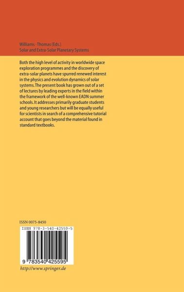 Both the high level of activity in worldwide space exploration programmes and the discovery of extra-solar planets have spurred renewed interest in the physics and evolution dynamics of solar systems. The present book has grown out of a set of lectures by leading experts in the field within the framework of the well-known EADN summer schools. It addresses primarily graduate students and young researchers but will be equally useful for scientists in search of a comprehensive tutorial account that goes beyond the material found in standard textbooks. TOC:The Solar System: An Overview.- Setting the Scene: A Star Formation Perspective.- Extrasolar Planets: A Review of Current Observations and Theory.- The Giant Planets.- The Formation of Planets.- Dynamics of the Solar System.- Photometry of Resolved Planetary Surfaces.- Mercury-Goals for a Future Mission.- Physical Processes Associated with Planetary Satellites.- Light Scattering in the Martian Atmosphere: Effects on Surface Photometry.- The Small Bodies of the Solar System.- Dust in the Solar System and in Other Planetary Systems.- Meteors, Meteor Showers and Meteoroid Streams.