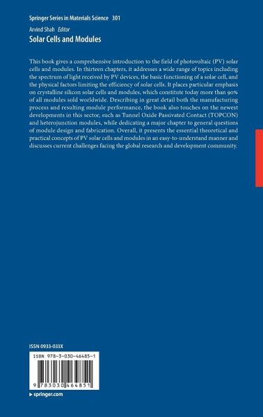 This book gives a comprehensive introduction to the field of photovoltaic (PV) solar cells and modules. In thirteen chapters, it addresses a wide range of topics including the spectrum of light received by PV devices, the basic functioning of a solar cell, and the physical factors limiting the efficiency of solar cells. It places particular emphasis on crystalline silicon solar cells and modules, which constitute today more than 90 % of all modules sold worldwide. Describing in great detail both the manufacturing process and resulting module performance, the book also touches on the newest developments in this sector, such as Tunnel Oxide Passivated Contact (TOPCON) and heterojunction modules, while dedicating a major chapter to general questions of module design and fabrication. Overall, it presents the essential theoretical and practical concepts of PV solar cells and modules in an easy-to-understand manner and discusses current challenges facing the global research and development community.