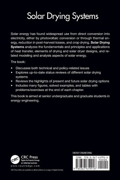 Solar Drying Systems deals with fundamentals, principles and applications of solar drying covering concept of solar energy, heat transfer, elements of drying and solar dryer designs, and related modeling and analysis aspects. It reviews highlights of present as well as future solar drying options with end of the chapter problems.