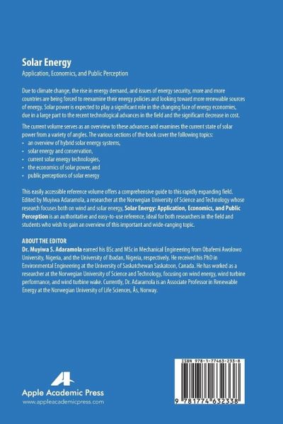 This title includes a number of Open Access chapters. Due to climate change, the rise in energy demand, and issues of energy security, more countries are being forced to reexamine their energy policies and consider more renewable sources of energy. Solar power is expected to play a significant role in the changing face of energy economies, due in a large part to the recent technological advances in the field and the significant decrease in cost. This book describes these advances and examines the current state of solar power from a variety of angles. The various sections of the book cover the following topics: an overview of hybrid solar energy systems, solar energy and conservation, current solar energy technologies, the economics of solar power, and public perceptions of solar energy. This easily accessible reference offers a comprehensive guide to this rapidly expanding field. Edited by Muyiwa Adaramola, a researcher at the Norwegian University of Science and Technology whose research focuses both on wind and solar energy, Solar Energy: Application, Economics, and Public Perception is an authoritative and easy-to-use reference, ideal for both researchers in the field and students who wish to gain an overview of this important and wide-ranging topic.