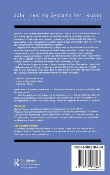 The use of solar collectors for domestic hot water over the past 20 years has demonstrated that solar heating systems are now founded on a reliable and mature technology. However, the development of similar, but more complex, systems to provide both domestic hot water and space heating (solar combisystems) resulted in a diverse range of different designs that were not carefully optimized to reflect local climate and practice. Application of energy-efficient building strategies such as improved thermal insulation and use of low temperature heat supply systems is becoming increasingly common. This trend, combined with growing environmental awareness and the subsidies available in certain countries, favours an increase in market share for solar combisystems. The need for guidelines in selecting the appropriate system and designing this system according to the specific needs of the building and the local environment is therefore now increasingly pressing. This book fills that need.