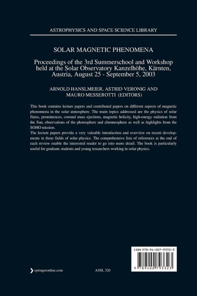 The concept of summerschools and workshops at the Kanzelh ohe Solar Observatory,Karn ten,Austria,devotedtoup-to-datetopicsinsolarphysics has been proven to be extremely successful, and thus in August/September 2003 the third combined summerschool and workshop was held there. This book contains the proceedings of the Summerschool and Wo- shop Solar Magnetic Phenomena held from 25 August to 5 September 2003 at the Solar Observatory Kanzelh ohe, which belongs to the Institute for Geophysics, Astrophysics and Meteorology of the University of Graz, Austria. The book contains the contributions from…mehr