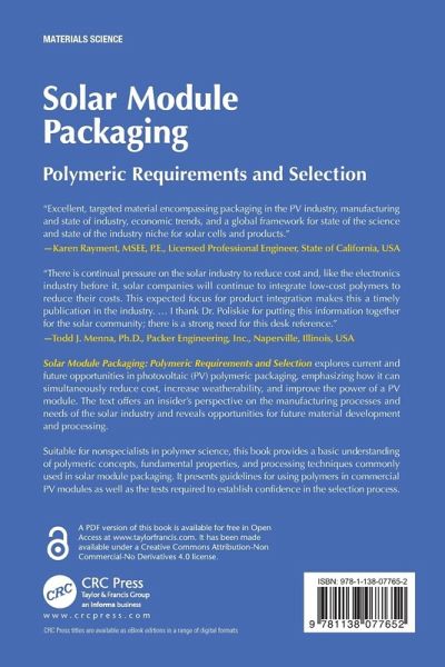 Exploring current and future opportunities in PV polymeric packaging, this work offers an insider's perspective on the manufacturing processes and needs of the solar industry and reveals opportunities for future material development and processing. Suitable for nonspecialists in polymer science, it provides a basic understanding of polymeric concepts, fundamental properties, and processing techniques commonly used in solar module packaging. The book also presents guidelines for using polymers in commercial PV modules as well as the tests required to establish confidence in the selection process.