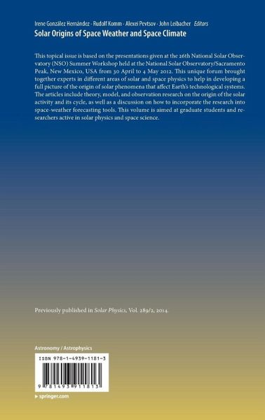 Presents an overview of recent research on the original of solar phenomena that affect Earth's technological systems. This topical issue is based on the presentations given at the 26th National Solar Observatory (NSO) Summer Workshop held at the National Solar Observatory/Sacramento Peak, New Mexico, USA from 30 April to 4 May 2012. This unique forum brought together experts in different areas of solar and space physics to help in developing a full picture of the origin of solar phenomena that affect Earth's technological systems. The articles include theory, model and observation research…mehr