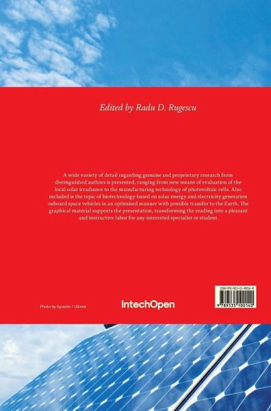 A wide variety of detail regarding genuine and proprietary research from distinguished authors is presented, ranging from new means of evaluation of the local solar irradiance to the manufacturing technology of photovoltaic cells. Also included is the topic of biotechnology based on solar energy and electricity generation onboard space vehicles in an optimised manner with possible transfer to the Earth. The graphical material supports the presentation, transforming the reading into a pleasant and instructive labor for any interested specialist or student.
