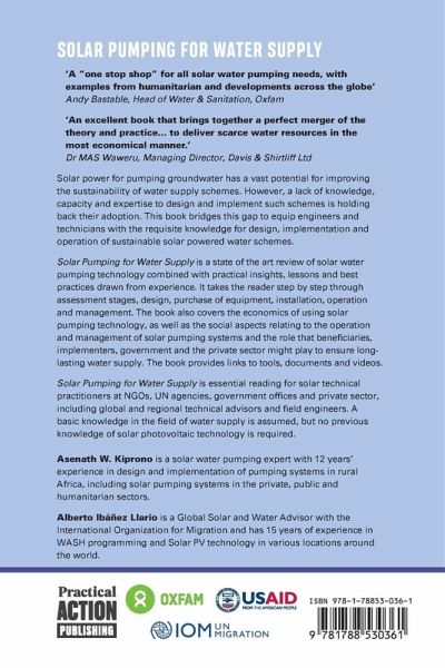 Solar power for pumping groundwater has a vast potential for improving the sustainability of water supply schemes. However a lack of knowledge is holding back their adoption. This book bridges this gap to equip engineers and technicians with the knowledge for design, implementation and operation of sustainable solar powered water schemes.