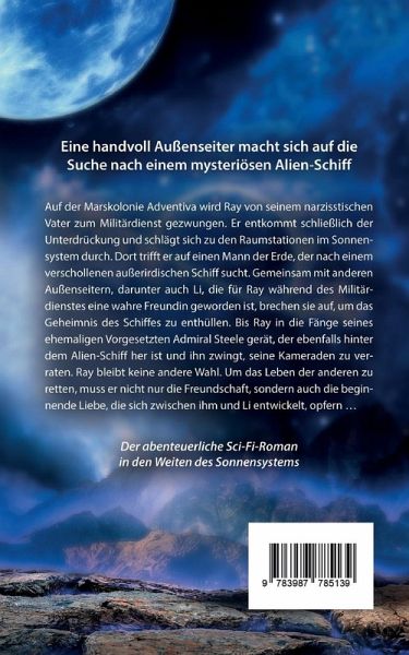 Eine handvoll Außenseiter macht sich auf die Suche nach einem mysteriösen Alien-SchiffDer abenteuerliche Sci-Fi-Roman in den Weiten des SonnensystemsAuf der Marskolonie Adventiva wird Ray von seinem narzisstischen Vater zum Militärdienst gezwungen. Er entkommt schließlich der Unterdrückung und schlägt sich zu den Raumstationen im Sonnensystem durch. Dort trifft er auf einen Mann der Erde, der nach einem verschollenen außerirdischen Schiff sucht. Gemeinsam mit anderen Außenseitern, darunter auch Li, die für Ray während des Militärdienstes eine wahre Freundin geworden ist, brechen sie auf, um das Geheimnis des Schiffes zu enthüllen. Bis Ray in die Fänge seines ehemaligen Vorgesetzten Admiral Steele gerät, der ebenfalls hinter dem Alien-Schiff her ist und ihn zwingt, seine Kameraden zu verraten. Ray bleibt keine andere Wahl. Um das Leben der anderen zu retten, muss er nicht nur die Freundschaft, sondern auch die beginnende Liebe, die sich zwischen ihm und Li entwickelt, opfern Erste Leser:innenstimmen Sylvia Kaml gelingt es auf eindrucksvolle Weise, die Atmosphäre des Weltraums und der verschiedenen Planeten einzufangen und dem Leser ein fesselndes Leseerlebnis zu bieten. Absolute Empfehlung! Ein packender Science-Fiction-Roman, der eine einzigartige und aufregende Geschichte erzählt. Für alle Star Wars Fans und Menschen, die sich gerne in fremde Galaxien träumen. Die düstere Atmosphäre der Mars-Ghettos und die geheimnisvolle Suche nach dem Alien-Schiff schaffen eine einzigartige Stimmung.