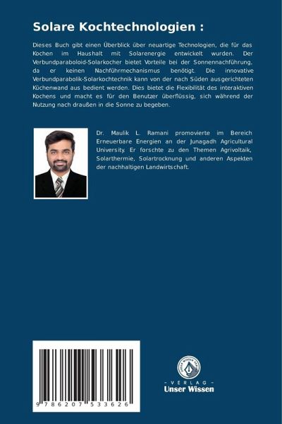 Dieses Buch gibt einen Überblick über neuartige Technologien, die für das Kochen im Haushalt mit Solarenergie entwickelt wurden. Der Verbundparaboloid-Solarkocher bietet Vorteile bei der Sonnennachführung, da er keinen Nachführmechanismus benötigt. Die innovative Verbundparabolik-Solarkochtechnik kann von der nach Süden ausgerichteten Küchenwand aus bedient werden. Dies bietet die Flexibilität des interaktiven Kochens und macht es für den Benutzer überflüssig, sich während der Nutzung nach draußen in die Sonne zu begeben.