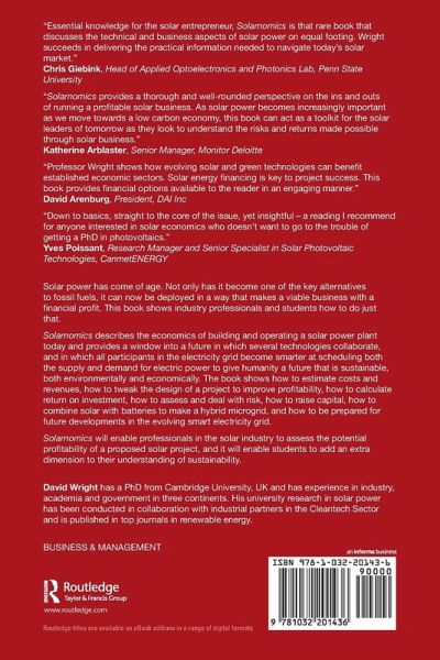 "Solarnomics provides a thorough and well-rounded perspective on the ins and outs of running a profitable solar business. As solar power becomes increasingly important as we move towards a low carbon economy, this book can act as a toolkit for the solar leaders of tomorrow as they look to understand the risks and returns made possible through solar business."