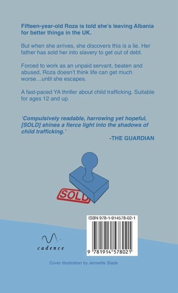 Fifteen-year-old Roza thinks she's leaving Albania for better things in the UK. But her dad has sold her. She's told she'll stay with her wealthy relatives and get a good education in exchange for light housework. But when she arrives, she realizes this is a lie. Her father has sold her to get out of debt. These people consider her their property. And they treat her as such. They work her hard, beating and starving her and refusing to let her go out. But she must tell people they are her parents. When Roza runs to the police, her captors show them a forged birth certificate. She is dismissed as attention-seeking and returned to them for punishment. Before Roza left Albania, her teacher told her about a man she could go to for help if she ever needed it, but she was too excited to pay attention. Now, she can't remember his name or address. He is somewhere in North London, but that's a huge place. She doesn't think life can get much worse, but when she escapes, she discovers she's wrong. Every year an estimated 300,000 children worldwide are taken by traffickers and sold as slaves. But this novel is one of the first to talk about it. It should appeal to fans of Miriam Halahmy, Anne Cassidy, and Julia Green. A YA adventure about child trafficking. Suitable for anyone over 12.