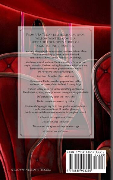 She's scared and broken, but soon she'll be mine. I was only a boy when I saw my mother murdered in front of me. That does something to a man. It turns him hard, cold, and makes him an addict for control. In all things. My desires are dark and what I'm interested in is far more than simple submission. I've been waiting for someone as broken as me. Someone who truly needs to give up complete control and rely on me to take away her pain. And then I found her. Katia. My kitten. The moment I laid eyes on her gorgeous face, full lips, and seductive curves, she stole the air from my lungs. It's been so long since I've wanted something so intensely. She devours my every waking moment, teasing me with just a taste. She's stronger than she knows, but haunted by a past that won't loosen its grip on her. She's refused my collar and I know why. The last one she wore wasn't by choice. But this time she's going to beg for it. I can give her what he didn't - true domination and trust. I'll own her pleasure, her happiness, and she can sate my desire for complete control. I only need her to give me a chance. Just one chance to buy her. The moment she agrees and steps on that stage at the auction, she's mine. But she doesn't have to worry, I'll care for all her desires. Sold is a full-length standalone dark romance with an HEA, no cheating, and no cliffhanger.