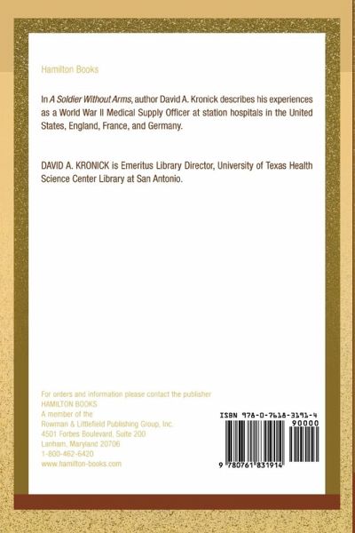 In A Soldier Without Arms, author David A. Kronick describes his experiences as a World War II Medical Supply Officer at station hospitals in the United States, England, France, and Germany. The author's personal accounts provide a unique and fascinating firsthand view of the dominant historical event of the 20th century.