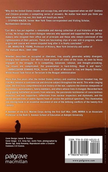 - Ambassador Edward Peck, former U.S. Chief of Mission in Iraq and Deputy Director, White House Task Force on Terrorism in the Reagan administration "In the spirit of Studs Terkel, Carl Mirra has given us Soldiers and Citizens, a splendid new oral history of U.S. military intervention in Iraq that could easily have been subtitled 'the good war gone bad.' This book is essential reading for anyone interested in learning why George W. Bush intervened in Iraq and just how difficult it will be to extricate the United States from what every one of Mirra's soldiers and citizens agrees will be a long and bloody war." - Dr. Douglas Little, Professor of History and Dean at Clark College; author of American Orientalism: The United States and the Middle Eastsince 1945