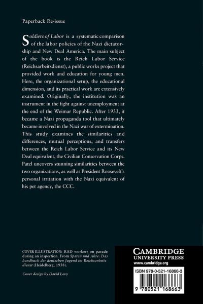 Originally published in 2005, Soldiers of Labor is a systematic comparison between the labor policies of the Nazi dictatorship and New Deal America. The main subject of the book is the Nazi Labor Service (Reichsarbeitsdienst), a public work scheme that provided work and education for young men. Here, the organizational setup, the educational dimension, and its practical work are extensively examined. Originally, the institution was an instrument in the fight against unemployment at the end of the Weimar Republic. After 1933, it became a Nazi propaganda tool that ultimately became involved in the Nazi's war of extermination. This study examines the similarities and differences, the mutual perceptions, and transfers between the Nazi Labor Service and its New Deal equivalent, the Civilian Conservation Corps. Patel uncovers stunning similarities between the two organizations, as well as President Roosevelt's irritating personal interest in the Nazi equivalent of his pet agency, the CCC.