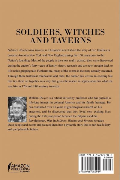 Soldiers, Witches and Taverns is a historical novel about two families in colonial New York and New England during the 150 years prior to the nation's founding. Many of the events in the story are historical, and most of the men and women really existed and are brought back to life in this gripping tale. Through these people and events, the author has woven an exciting story that ties them together in a way that carries the reader back into 17th and 18th century America.