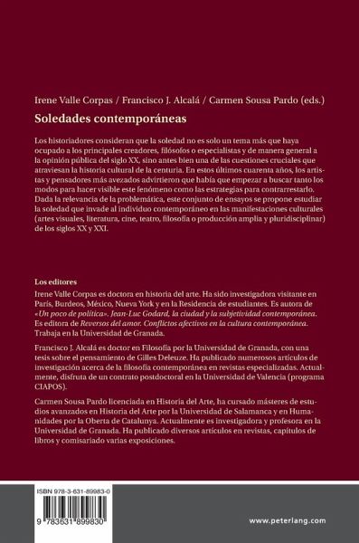 Los historiadores consideran que la soledad no es solo un tema más que haya ocupado a los principales creadores, filósofos o especialistas y de manera general a la opinión pública del siglo XX, sino antes bien una de las cuestiones cruciales que atraviesan la historia cultural de la centuria. En estos últimos cuarenta años, los artistas y pensadores más avezados advirtieron que había que empezar a buscar tanto los modos para hacer visible este fenómeno como las estrategias para contrarrestarlo. Dada la relevancia de la problemática, este conjunto de ensayos se propone estudiar la soledad que invade al individuo contemporáneo en las manifestaciones culturales (artes visuales, literatura, cine, teatro, filosofía o producción amplia y pluridisciplinar) de los siglos XX y XXI.
