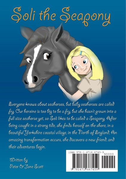 Everyone knows about seahorses, but baby seahorses are called fry. Our heroine is too big to be a fry, but she hasn't grown into a full size seahorse yet, so Soli likes to be called a Seapony. After being caught in a strong tide, she finds herself on the shore, in a beautiful Yorkshire coastal village, in the North of England, An amazing transformation occurs, she discovers a new friend, and their adventures begin. The first of a series of books and adventures, 'Soli the Seapony' introduces the main characters and locations. As the story develops, amazing discoveries are made, unusual things happen, and our friends become true, unsung heroes.