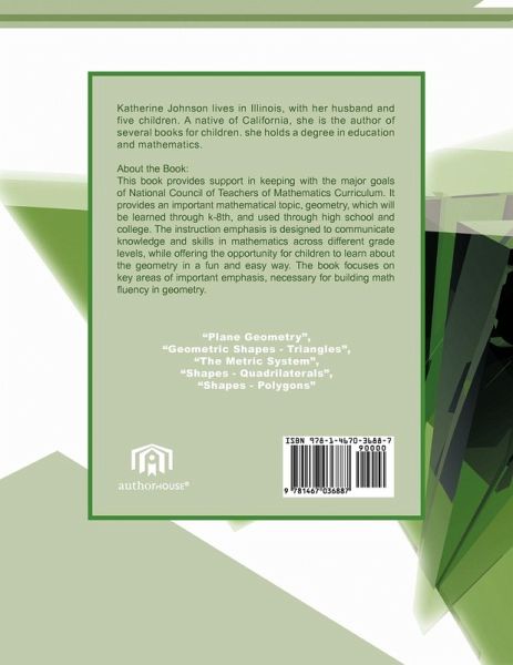This book provides support in keeping with the major goals of National Council of Teachers of Mathematics Curriculum. It provides an important mathematical topic, geometry, which will be learned through k-8th, and used through high school and college. The instruction emphasis is designed to communicate knowledge and skills in mathematics across different grade levels, while offering the opportunity for children to learn about the geometry in a fun and easy way. The book focuses on key areas of important emphasis, necessary for building math fluency in geometry.