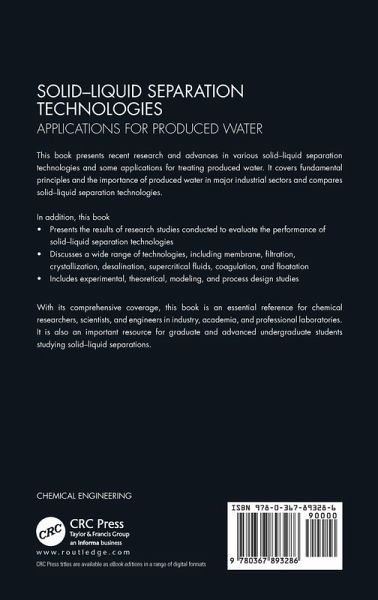 This book presents recent research and advances in various solid-liquid separation technologies and some applications for treating produced water. It covers fundamental principles and the importance of produced water in major industrial sectors and compares solid-liquid separation technologies. In addition, this book Presents the results of research studies conducted to evaluate the performance of solid-liquid separation technologies Discusses a wide range of technologies, including membrane, filtration, crystallization, desalination, supercritical fluids, coagulation, and floatation Includes experimental, theoretical, modeling, and process design studies With its comprehensive coverage, this book is an essential reference for chemical researchers, scientists, and engineers in industry, academia, and professional laboratories. It is also an important resource for graduate and advanced undergraduate students studying solid-liquid separations.