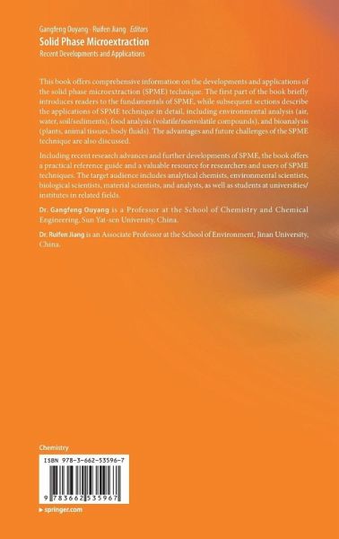 Including recent research advances and further developments of SPME, the book offers a practical reference guide and a valuable resource for researchers and users of SPME techniques. The target audience includes analytical chemists, environmental scientists, biological scientists, material scientists, and analysts, as well as students at universities/institutes in related fields. Dr. Gangfeng Ouyang is a Professor at the School of Chemistry and Chemical Engineering, Sun Yat-sen University, China.