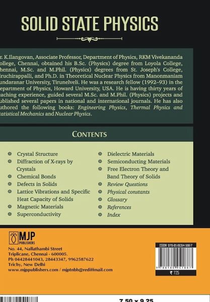 In preparing the book, the author has taken special care to present the topics in a coherent,simple and straightforward manner. SI units have been used throughout this book. Numericalproblems are solved in each chapter wherever necessary for the better understanding of thesubject. Exercises including problems have been given at the end of each chapter. This book is intended as a textbook for B.Sc and M.Sc Physics curriculum. It is also helpfulto the students of Chemistry, Materials Science and E