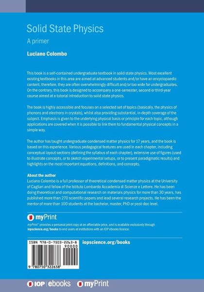 This book is a self-contained undergraduate textbook in solid state physics, designed to accompany a one-semester second or third year course. The book is highly accessible and focuses on a selected set of topics (basically the physics of electrons and phonons), whilst also providing substantial, in-depth coverage of the subject.