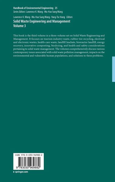 This book is the third volume in a three-volume set on Solid Waste Engineering and Management. It focuses on tourism industry waste, rubber tire recycling, electrical and electronic wastes, health-care waste, landfill leachate, bioreactor landfill, energy recovery, innovative composting, biodrying, and health and safety considerations pertaining to solid waste management.. The volumes comprehensively discuss various contemporary issues associated with solid waste pollution management, impacts on theenvironmental and vulnerable human populations, and solutions to these problems.