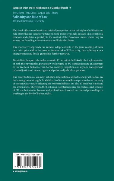 This book offers an authentic and original perspective on the principles of solidarity and rule of law that are variously interconnected and increasingly invoked in international relations and affairs, especially in the context of the European Union, where they are among the founding values common to all Member States. The innovative approach the authors adopt consists in the joint reading of these two principles within the broader framework of EU security, thus offering a new interpretation and fertile ground for further research. Divided into four parts, the authors consider EU security to be linked to the implementation of both these principles, particularly with regard to EU stabilization and enlargement to the Western Balkans, cross-border security, migration and asylum management, criminal justice and human rights, and police and judicial cooperation The contributions of eminent scholars, international experts,and practitioners are the book's greatest strength. In addition, it offers a valuable new perspective on the study of contemporary issues affecting the Western Balkans, but also all Member States and the Union itself. Therefore, the book is an essential resource for students and scholars of EU law, but also for lawyers and professionals involved in criminal proceedings or working in the field of human rights.