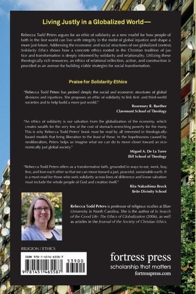 Rebecca Todd Peters argues for an ethic of solidarity as a new model for how people of faith in the first world can live with integrity in the midst of global injustice and shape a more just future. Addressing the economic and social structures of our globalized context, Peters shows how a concrete ethics rooted in the Christian tradition of justice and transformation is deeply informed by solidarity and relationality. Utilizing these theologically rich resources, an ethics of relational reflection, action, and construction is provided as an avenue for building viable strategies for social transformation.
