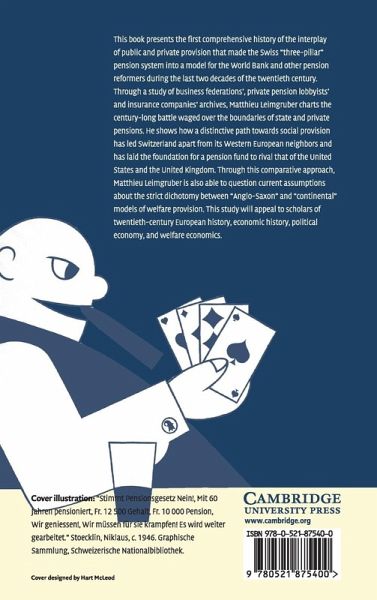 This book presents the first comprehensive history of the interplay of public and private provision that made the Swiss 'three-pillar' pension system into a model for the World Bank and other pension reformers during the last two decades of the twentieth century. Through a study of business federations', private pension lobbyists' and insurance companies' archives, Matthieu Leimgruber charts the century-long battle waged over the boundaries of state and private pensions. He shows how a distinctive path towards social provision has laid the foundation for a pension fund industry rivalling that of the United States and the United Kingdom. Through this comparative approach Matthieu Leimgruber is also able to question current assumptions about the strict dichotomy between 'Anglo-Saxon' and 'continental' models of welfare provision. This study will appeal to scholars of twentieth-century European history, economic history, political economy and welfare economics.