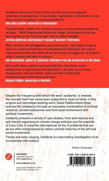 Despite the frequency with which the word 'solidarity' is invoked the concept itself has rarely been subjected to close scrutiny. In this original and stereotype-busting work, David Featherstone helps redress this imbalance through an innovative combination of archival research, activist testimonies and first-hand involvement with political movements. Presenting a variety of case studies, from anti-slavery and anti-fascist organizing to climate change activism and the boycotts of Coca-Cola, Featherstone unearths international forms of solidarity that are all too often marginalized by nation-centred histories of the left and social movements. Timely and wide-ranging, this is a fascinating investigation of an increasingly vital subject.