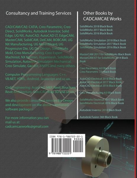 The SolidWorks 2018 Black Book is the 5th edition of our series on SolidWorks. With lots of additions and thorough review, we present the book to help professionals as well as learners in creating some of the most complex solid models. The book follows a step by step methodology. In this book, we have tried to give real-world examples with real challenges in designing. We have tried to reduce the gap between university use of SolidWorks and industrial use of SolidWorks. In this edition of book, we have included many new features of SolidWorks like 3D printing, SolidWorks MBD (Model Based Definition), Magnetic Mates, Asset Builder, 3D PDFs, SolidWorks CAM and so on. There are two new chapters added in this book which were not in the previous edition. The book covers almost all the information required by a learner to master the SolidWorks. The book starts with sketching and ends at advanced topics like Mold Design, Sheetmetal, Weldment, and SolidWorks MBD, SolidWorks CAM. Some of the salient features of this book are : In-Depth explanation of concepts Every new topic of this book starts with the explanation of the basic concepts. In this way, the user becomes capable of relating the things with real world. Topics Covered Every chapter starts with a list of topics being covered in that chapter. In this way, the user can easy find the topic of his/her interest easily. Instruction through illustration The instructions to perform any action are provided by maximum number of illustrations so that the user can perform the actions discussed in the book easily and effectively. There are about 1090 illustrations that make the learning process effective. Tutorial point of view At the end of concept's explanation, the tutorial make the understanding of users firm and long lasting. Almost each chapter of the book has tutorials that are real world projects. Moreover most of the tools in this book are discussed in the form of tutorials. Project Free projects and exercises are provided to students for practicing. For Faculty If you are a faculty member, then you can ask for video tutorials on any of the topic, exercise, tutorial, or concept. New Addition If anything is added in this edition but is not available in the previous editions, then it is displayed with a NEW symbol in table of content.