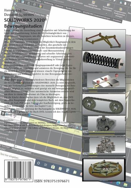 Dassault SystèmesSOLIDWORKS 2020BewegungsstudienISBN 9783751976671Lange Zeit war die Darstellung einer Perspektive mit Schattierung der Gipfel der Visualisierung. Schon die 3D-Drehmöglichkeit von Bauteilen und Baugruppen, um alle Ansichten betrachten zu können, hat die Darstellung revolutioniert. 3D-CAD-Programme bieten heute die Möglichkeit Baugruppen in dem kompletten Bewegungsablauf darzustellen, dies geschieht mit programmspezifischen Zuweisungen der Zusammenbaubeziehungen und mit bewegungsorientierten Kraft- und Motorantrieben. 64-Bit-Betriebssysteme, ausreichend und schneller Arbeitsspeicher, kombiniert mit ausgereiften Grafikkarten mit angepassten hochwertigen Treibern lassen eine Bewegungsdarstellung in Virtual Reality-Qualität zu.Bewegungsstudien ändern ein Baugruppenmodell oder seine Eigenschaften nicht, sie simulieren und animieren die Bewegung, die Sie für ein Modell festlegen, außerdem können visuelle Eigenschaften wie Beleuchtung und Kameraperspektive in eine Bewegungsstudie integriert werden.Dieses Buch zeigt in fünf verschiedenen Bereichen die Möglichkeiten der Bewegungssimulation mit SOLIDWORKS 2020. Es wird dargestellt, wie mit Verknüpfungszuweisungen eine manuelle Bewegung der Baugruppe möglich ist, weiterhin wird gezeigt wie mit bewegungsspezifischen Motorzuweisungen eine automatische Animation erreicht wird um diese in einem Videoformat als Film zu übertragen.Für die Käufer dieses Buches biete ich die Möglichkeit an, eine DVD mit allen Baugruppen und dem kompletten Buch, mit dem Supportbereich, als Farb-PDF gegen Vorlage der Kaufbestätigung, gratis zu bestellen.Leserkreis:Ingenieurstudenten, Absolventen an Meister-, Techniker- und Fachhochschulen, Auszubildende wie Technische Produktdesigner, Industriemechaniker, außerdem im CAD-Umfeld für Lehrer im beruflichen Einsatz, der Weiterbildung und Umschulung.