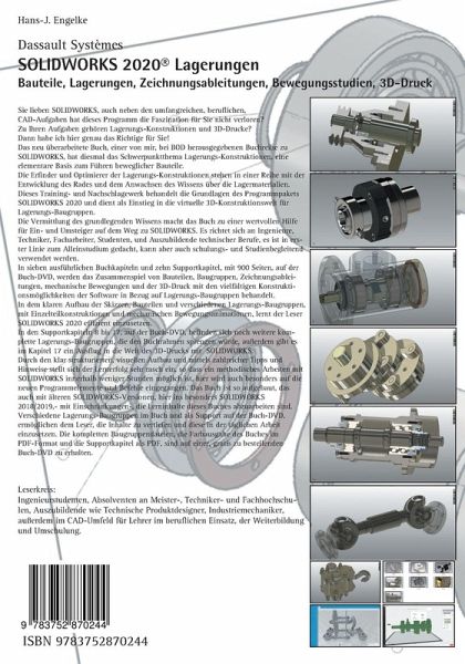 Sie lieben SOLIDWORKS, auch neben den umfangreichen, beruflichen, CAD-Aufgaben hat dieses Programm die Faszination für Sie nicht verloren?Zu Ihren Aufgaben gehören Lagerungs-Konstruktionen und 3D-Drucke?Dann habe ich hier genau das Richtige für Sie!Das neu überarbeitete Buch, einer von mir, bei BOD herausgegebenen Buchreihe zu SOLIDWORKS, hat diesmal das Schwerpunktthema Lagerungs-Konstruktionen, eine elementare Basis zum Führen beweglicher Bauteile. Dieses Training- und Nachschlagewerk behandelt die Grundlagen des Programmpakets SOLIDWORKS 2020 und dient als Einstieg in die virtuelle 3D-Konstruktionswelt für Lagerungs-Baugruppen.Die Vermittlung des grundlegenden Wissens macht das Buch zu einer wertvollen Hilfe für Ein- und Umsteiger auf dem Weg zu SOLIDWORKS. Es richtet sich an Ingenieure, Techniker, Facharbeiter, Studenten, und Auszubildende technischer Berufe, es ist in erster Linie zum Alleinstudium gedacht, kann aber auch schulungs- und studienbegleitend verwendet werden.In sieben ausführlichen Buchkapiteln und zehn Supportkapitel, damit mehr als 1200 farbigen PDF-Seiten auf der Buch-DVD, werden das Zusammenspiel von Bauteilen, Baugruppen, Zeichnungsableitungen, mechanische Bewegungen und der 3D-Druck mit den vielfältigen Konstruktionsmöglichkeiten der Software in Bezug auf Lagerungs-Baugruppen behandelt. In dem klaren Aufbau der Skizzen, Bauteilen und verschiedenen Lagerungs-Baugruppen, mit Einzelteilkonstruktionen und mechanischen Bewegungsanimationen, lernt der Leser SOLIDWORKS 2020 effizient einzusetzen.In den Supportkapiteln 8 bis 17, auf der Buch-DVD, befinden sich noch weitere komplette Lagerungs-Baugruppen, die den Buchrahmen sprengen würde, außerdem gibt es im Kapitel 17 ein Ausflug in die Welt des 3D-Drucks mit SOLIDWORKS.Die kompletten Baugruppendateien, die Farbausgabe des Buches im PDF-Format und die Supportkapitel als PDF, sind auf einer, gratis zu bestellenden Buch-DVD zu erhalten.