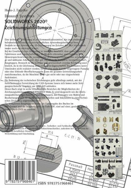 Hans-J. EngelkeSOLIDWORKS 2020ZeichnungsableitungenEine technische Zeichnung ist ein Kommunikationsmittel, das zum eindeutigen Informationsaustausch in unterschiedlichen Anwendungsbereichen dient. Deshalb ist das Ableiten von 2D-Zeichnungen im Zeitalter der 3D-CAD-Technik immer noch ein wichtiger Schritt.Bei der Erstellung einer Zeichnung ist immer zu beachten, dass später sämtliche Funktionen und Eigenschaften des 3D-Modells erkennbar und eindeutig sind. Dementsprechend kann die normgerechte Zeichnungserstellung eine zeitaufwändige und mühsame Arbeit sein. Dies gilt vor allem für komplexe Geometrien oder Baugruppen. Dennoch ist die korrekte und gewissenhaft erstellte Zeichnung unerlässlich, da in der Zeichnung nicht enthaltene Eigenschaften des Produktes unter Umständen nicht realisiert werden, bereits eine nicht korrekt eingetragene Passung oder eine fehlende Oberflächenangabe kann die gesamte Entwicklungsarbeit zunichtemachen, da die Maschine später gar nicht oder nur eingeschränkt funktioniert.Die Bedeutung der technischen Zeichnungen geht allerdings zurück, mit der fortschreitenden Entwicklung der CAD-Systeme lassen sich immer mehr fertigungstechnische Angaben am 3D-Modell anbinden.Dieses Buch zeigt in sechs verschiedenen Bereichen die Möglichkeiten der Zeichnungsableitung mit SOLIDWORKS 2020. Es wird dargestellt wie die Zeichnungsableitung von Bauteilen und Baugruppen, das Eintragen von Maßen und Bearbeitungen und die Anwendung von Tabellen und Stücklisten in einer Technischen Zeichnung angewendet wird.Ein Wort noch in persönlicher Sache, dieses Buch erscheint wieder über BOD, da es für Fachbuchverlage nicht gewinnbringend ist, CAD Bücher für einen kleineren Anwenderbereich zu verlegen. Um dieses Buch auch kostenüberschaubar einem kleineren Anwenderkreis zur Verfügung zu stellen, habe ich auf ein Druckformat in Farbe verzichtet. Für die Käufer dieses Buches biete ich die Möglichkeit an, eine DVD gegen Vorlage der Kaufbestätigung, gratis zu bestellen, hierzu sehen Sie bitte das Kapitel 7 an.