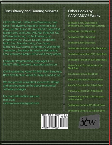 The SolidWorks Simulation 2017 Black Book, is written to help professionals as well as learners in performing various tedious jobs of Finite Element Analysis. The book follows a step by step methodology. This book explains the background work running behind your simulation analysis screen. The book covers almost all the information required by a learner to master the SolidWorks Simulation. The book starts with basics of FEA, goes through all the simulation tools and ends up with practical examples of analysis. Chapters on manual FEA ensure the firm understanding of FEA concepts through SolidWorks Simulation. The book contains our special sections named "Why?". We have given reasons for selecting every option in analysis under the "Why?" sections. The book explains the Solver selection, iteration methods like Newton-Raphson method and integration techniques used by SolidWorks Simulation for functioning. A chapter on Model Preparation is added in this edition to help you understand the procedures of preparing model for analysis.