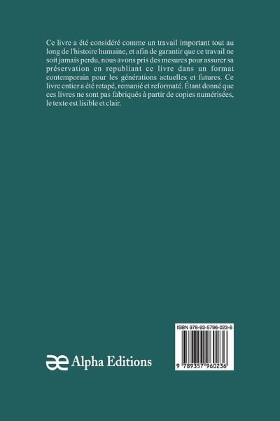 Soliloques sceptiques, un livre classique, a été considéré comme important tout au long de l'histoire de l'humanité, et pour que cet ouvrage ne soit jamais oublié, chez Alpha Editions, nous avons fait des efforts pour sa préservation en rééditant ce livre dans un format moderne pour les générations présentes et futures. Tout ce livre a été reformaté, retapé et conçu. Ces livres ne sont pas constitués de copies numérisées de leur ¿uvre originale et le texte est donc clair et lisible.