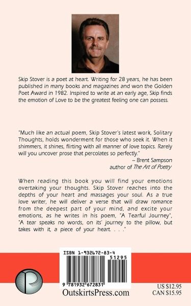 When reading this book you will find your emotions overtaking your thoughts. Skip Stover reaches into the depths of your heart and massages your soul. As a true love writer, he will deliver a verse that will draw romance from the deepest part of your mind, and excite your emotions, as he writes in his poem, "A Tearful Journey", " A tear speaks no words, on its' journey to the pillow, but takes with it, a piece of your heart. . . . "