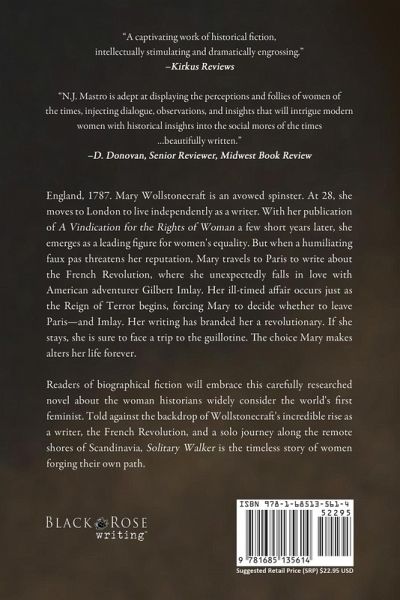 "A captivating work of historical fiction, intellectually stimulating and dramatically engrossing." -Kirkus Reviews England, 1787. Mary Wollstonecraft is an avowed spinster. At 28, she moves to London to live independently as a writer. With her publication of A Vindication for the Rights of Woman a few short years later, she emerges as a leading figure for women's equality. But when a humiliating faux pas threatens her reputation, Mary travels to Paris to write about the French Revolution, where she unexpectedly falls in love with American adventurer Gilbert Imlay. Her ill-timed affair occurs just as the Reign of Terror begins, forcing Mary to decide whether to leave Paris-and Imlay. Her writing has branded her a revolutionary. If she stays, she is sure to face a trip to the guillotine. The choice Mary makes alters her life forever. Readers of biographical fiction will embrace this carefully researched novel about the woman historians widely consider the world's first feminist. Told against the backdrop of Wollstonecraft's incredible rise as a writer, the French Revolution, and a solo journey along the remote shores of Scandinavia, Solitary Walker is the timeless story of women forging their own path.