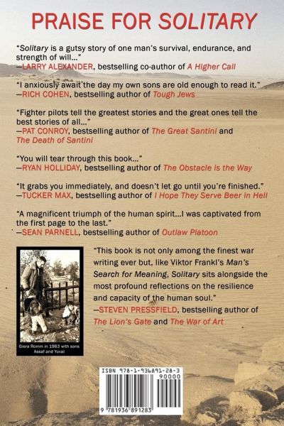 "I am dangling beneath my parachute. Gazing down from a height of 10,000 feet, knowing I am going to be killed in less than fifteen minutes, I feel great sorrow for myself. None of my fellow pilots who've parachuted into the Nile Delta have survived the encounter with the welcoming committee below, and I have no reason to think my fate will be any different." -- Giora Romm, Solitary "Giora Romm's Solitary seized me from the opening paragraph. Yes, the storytelling is spellbinding, but it is Romm's explication of the theme of the fall, ordeal and self-resurrection that places his book not only among the finest war writing ever but, like Viktor Frankl's Man's Search for Meaning, alongside the most profound reflections on the resilience and capacity of the human soul." -Steven Pressfield, bestselling author of Gates of Fire and The War of Art In June 1967, Lt. Giora Romm shot down five MiGs in the Six Day War. This remarkable feat made Romm, at twenty-two years old, the Israeli Air Force's first fighter ace. Just two years and a half years later, in another dogfight, Romm's Mirage jet was shot down over the Nile Delta. With one arm broken and the opposite leg shattered by violent ejection from the aircraft, Romm collected himself and prepared for the worst. If his captors discovered his "Hero of the Six Day War" identity, Romm would become the most prized propaganda tool in the Arab-Israeli conflict, bar none. How he maintained his sanity in solitary confinement, in a plaster cast that extended from his toes to his chest, while suffering beatings and daily interrogation, strains comprehension. Solitary is destined to become mandatory reading not just at military academies and synagogues, but in hospices, rehabilitation centers and creative writing programs around the world.