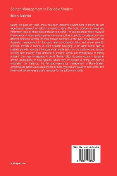 During the past ten years, there has been intensive development in theoretical and experimental research of solitons in periodic media. This book provides a unique and informative account of the state-of-the-art in the field. The volume opens with a review of the existence of robust solitary pulses in systems built as a periodic concatenation of very different elements. Among the most famous examples of this type of systems are the dispersion management in fiber-optic telecommunication links, and (more recently) photonic crystals. A number of other systems belonging to the same broad class of spatially periodic strongly inhomogeneous media (such as the split-step and tandem models) have recently been identified in nonlinear optics, and transmission of solitary pulses in them was investigated in detail. Similar soliton dynamics occurs in temporal-domain counterparts of such systems, where they are subject to strong time-periodic modulation (for instance, the Feshbach-resonancemanagement in Bose-Einstein condensates). Basis results obtained for all these systems are reviewed in the book. This timely work will serve as a useful resource for the soliton community.