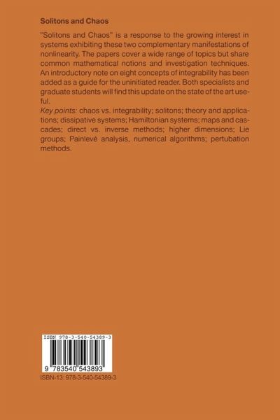 I General Questions on Chaos and Integrability.- Integration of Non-Integrable Systems.- Order and Chaos in the Statistical Mechanics of the Integrable Models in 1+1 Dimensions.- Soliton Dynamics and Chaos Transition in a Microstructured Lattice Model.- What is the Role of Dynamical Chaos in Irreversible Processes?.- A Propositional Lattice for the Logic of Temporal Predictions.- Damping, Quantum Field Theory and Thermodynamics.- Quasi-Monomial Transformations and Decoupling of Systems of ODE's.- II Physical Systems with Soliton Ingredients.- Solitons in Optical Fibers: First- and Second-Order Perturbations.- Similarity Solutions of Equations of Nonlinear Optics.- Heisenberg Ferromagnet, Generalized Coherent States and Nonlinear Behaviour.- Integrable Supersymmetric Models and Phase Transitions in One Dimension.- Denaturation of DNA in a Toda Lattice Model.- III Dissipative Systems.- A Simple Method to Obtain First Integrals of Dynamical Systems.- Transition to Turbulence in 1-D Rayleigh-Bénard Convection.- Modelling of Low-Dimensional, Incompressible, Viscous, Rotating Fluid Flow.- Spatial Coherent Structures in Dissipative Systems.- Hierarchies of (1+1)-Dimensional Multispeed Discrete Boltzmann Model Equations.- IV Hamiltonian Systems.- Universality of the Long Time Tail in Hamiltonian Dynamics.- Why some Hénon-Heiles Potentials are Integrable.- Chaotic Pulsations in Variable Stars with Harmonic Mode Coupling.- Canonical Forms for Compatible BiHamiltonian Systems.- V Maps and Cascades.- Transitions from Chaotic to Brownian Motion Behaviour.- Kinetic Theory for the Standard Map.- Probabilistic Description of Deterministic Chaos: A Local Equilibrium Approach.- State Prediction for Chaotic 1-D-Maps.- Exact and Approximate Reconstruction of Multifractal CodingMeasures.- Conservative Versus Reversible Dynamical Systems.- A Simple Method to Generate Integrable Symplectic Maps.- Integrable Mappings and Soliton Lattices.- VI Direct Methods Applicable to Soliton Systems.- Integrable Higher Nonlinear Schrödinger Equations.- Nonclassical Symmetry Reductions of a Generalized Nonlinear Schrödinger Equation.- Direct Methods in Soliton Theories.- Trilinear Form - an Extension of Hirota's Bilinear Form.- On the Use of Bilinear Forms for the Search of Families of Integrable Nonlinear Evolution Equations.- From Periodic Processes to Solitons and Vice-Versa.- VII Inverse Methods Related to a Linearization Scheme.- The Crum Transformation for a Third Order Scattering Problem.- Darboux Theorems Connected to Dym Type Equations.- Forced Initial Boundary Value Problems for Burgers Equation.- Creation and Annihilation of Solitons in Nonlinear Integrable Systems.- VIII Nonlinear Excitations in more than one Space Dimension.- Multidimensional Nonlinear Schrödinger Equations Showing Localized Solutions.- New Soliton Solutions for the Davey-Stewartson Equation.- 2+1 Dimensional Dromions and Hirota's Bilinear Method.- Skyrmions Scattering in (2+1) Dimensions.- Index of Contributors.