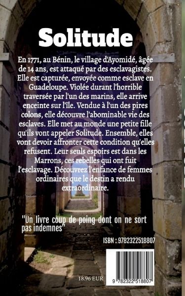 Ayomidé, 14 ans, vit paisiblement au Bénin, en 1771, dans un petit village. Des esclavagistes les attaquent, elle est enlevée, emmenée au port de Ouida. Devenant esclave, elle est envoyée en Guadeloupe, sur le navire, durant la traversée, elle est violée par un marin, se retrouvant enceinte. Arrivée sur l'île, elle découvre la vie d'esclave, donne naissance à une petite fille nommée Solitude. Ensemble, elles vont devoir affronter les épreuves de la servitude, tout fait pour reprendr leur liberté. Un espoir existe, les Marrons, ces guerriers intrépides qui vivent dans les forêt de Guadeloupe. Elles vont devoir s'armer de courage pour les rejoindre, c'est l'histoire d'une femme ordinaire au destin extraordinaire.