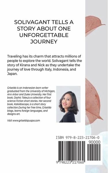 Solivagant is a collection of travel novelettes set in Italy, indonesia, and Japan. The story follows a young entrepreneur Kirana Ayu Lestari who met Nicholas Tiberias in her journey. This coming-of-age story is filled with beautiful landscapes, delicious cuisine, and cultural arts; drawing us to unforgettable adventures.