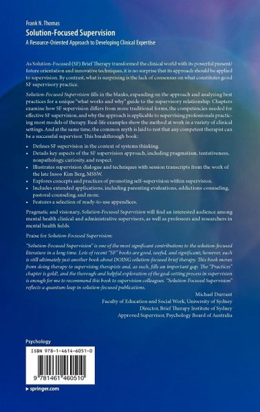 SF Supervision Stance.- Systems thinking and isomorphism.- The Insoo approach to SF Supervision.- SF Supervision Practices.- Tap on the shoulder: Supervision with Insoo Kim Berg.- Research and Supervision.- Applications.- Concluding thoughts.