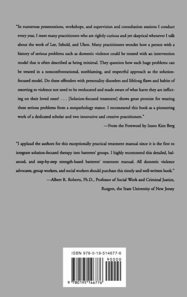 Every fifteen seconds someone commits a crime of domestic violence in the United States, and most violators will be court-mandated to receive group treatment. Outcome studies of traditional treatment programs (those with confrontational or educational approaches) indicate high rates of dropping out and low effectiveness, lending urgency to the need to find an alternative method. This book describes a cutting-edge treatment approach that creates effective, positive changes in domestic violence offenders. Solution-focused therapy focuses on holding offenders accountable and responsible for building solutions, rather than emphasizing their problems and deficits. By focusing on "solution-talk" instead of "problem-talk," clients are assisted in developing useful goals and solution behaviors that are then amplified, supported, and reinforced through a solution-building process. The book will be of great interest to professionals and graduate students in social work, psychology, and counseling.